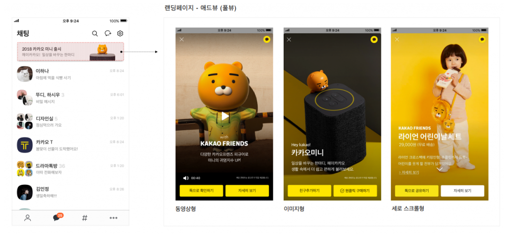 - 카카오 모먼트 광고 상품 중 하나로, 카카오 톡 채팅방 최상단에 노출되는 형태의 광고 상품이다.