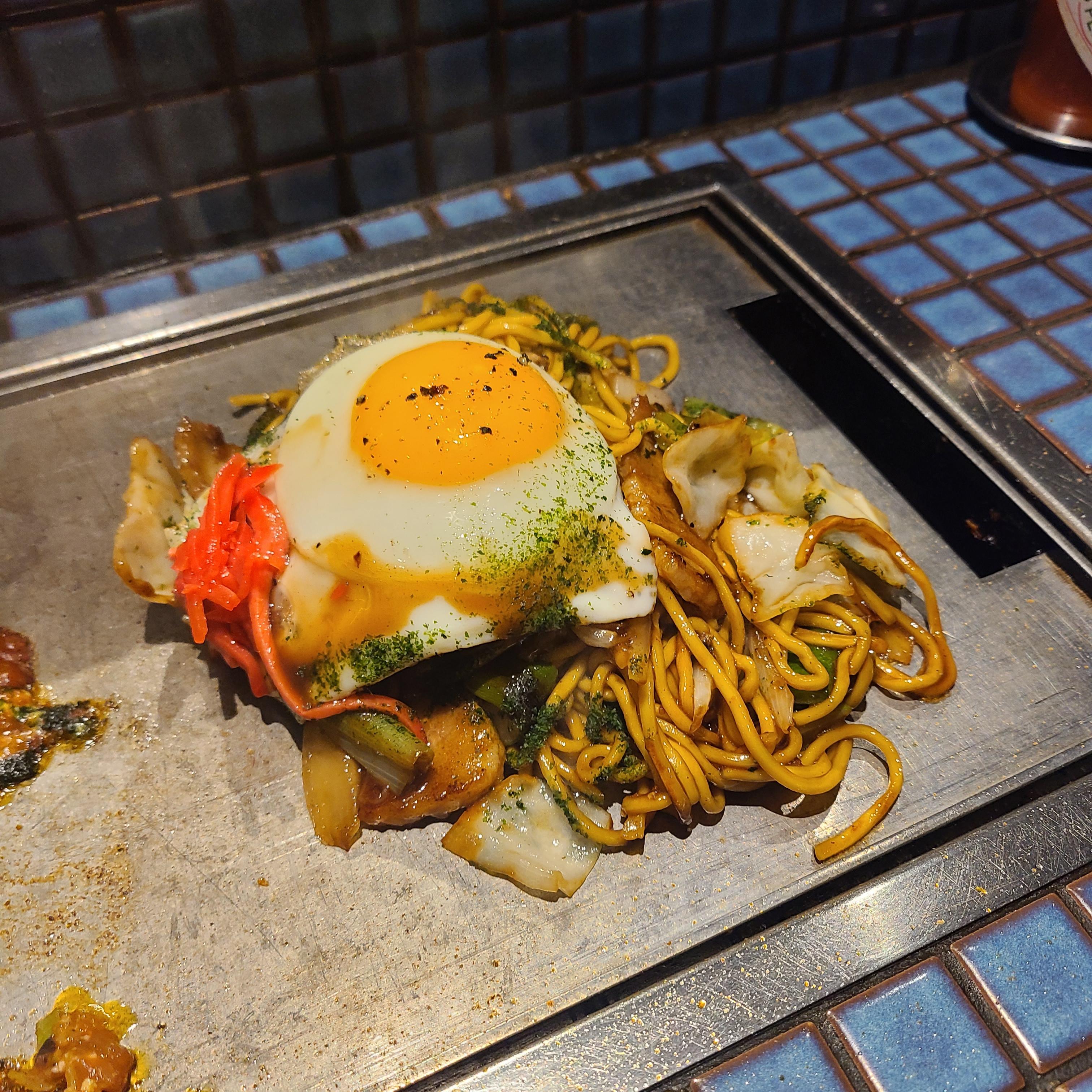 새우가 들어간 오꼬노미야끼와 돼지고기볶음면을 주문했다