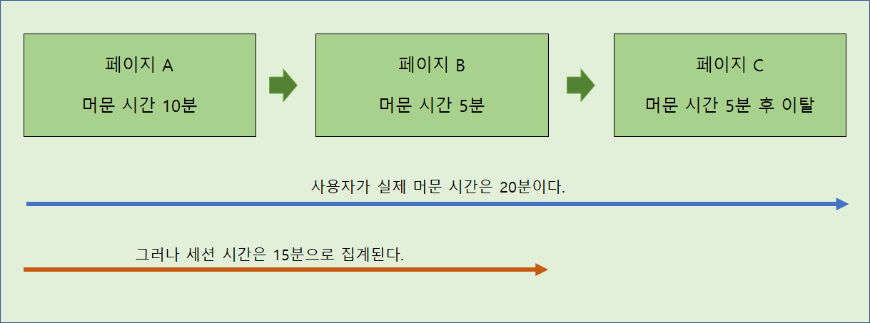 - 세션 시간은 마지막 페이지에 머문 시간을 무시한다.