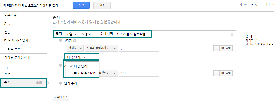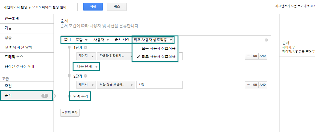 - 또한 순서 세그먼트에는 ‘단계’에 대한 조건을 걸어줄 수 있는데,