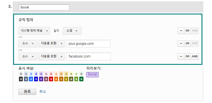 - Google 상품 매장에서 기본 채널 그룹인 소셜에 Google 플러스와 Facebook 트래픽을 포함시키려는 경우