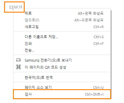 - 클릭을 하고 밑에 '검사'를 누른다.