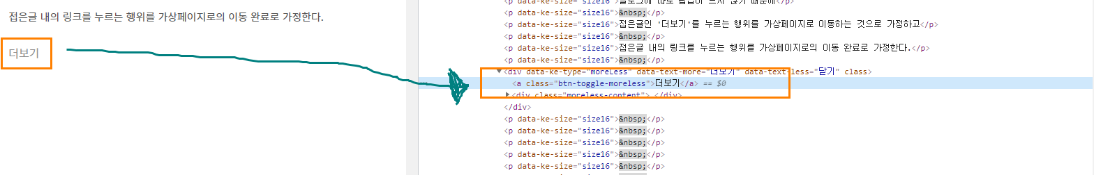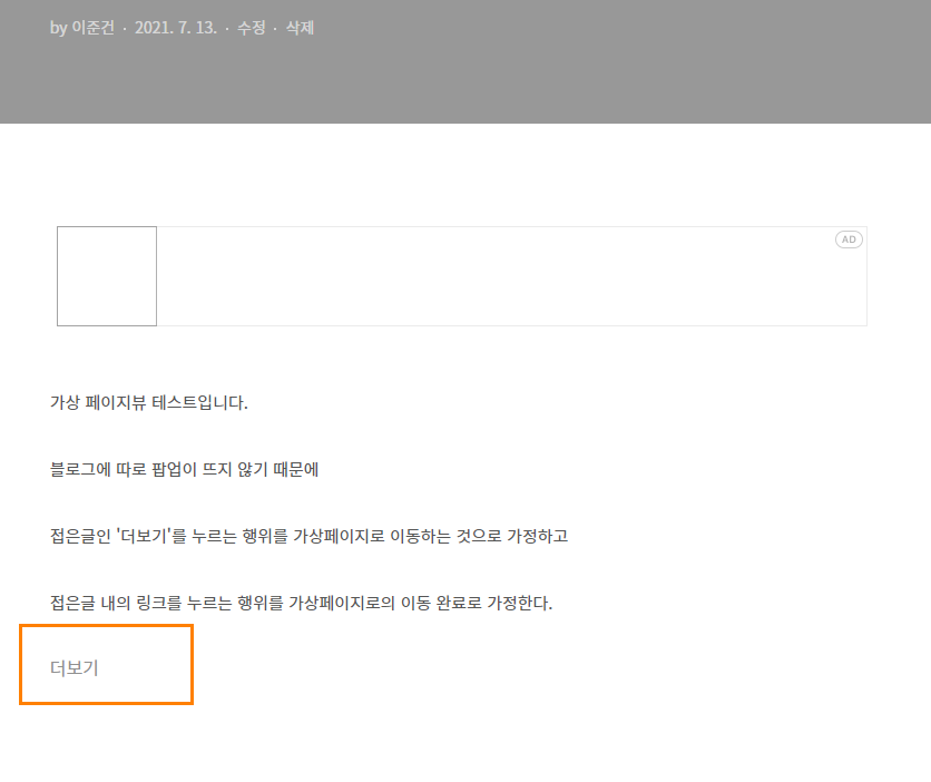 접은글의 '더보기'를 누르는것을 가상페이지뷰로의 이동으로