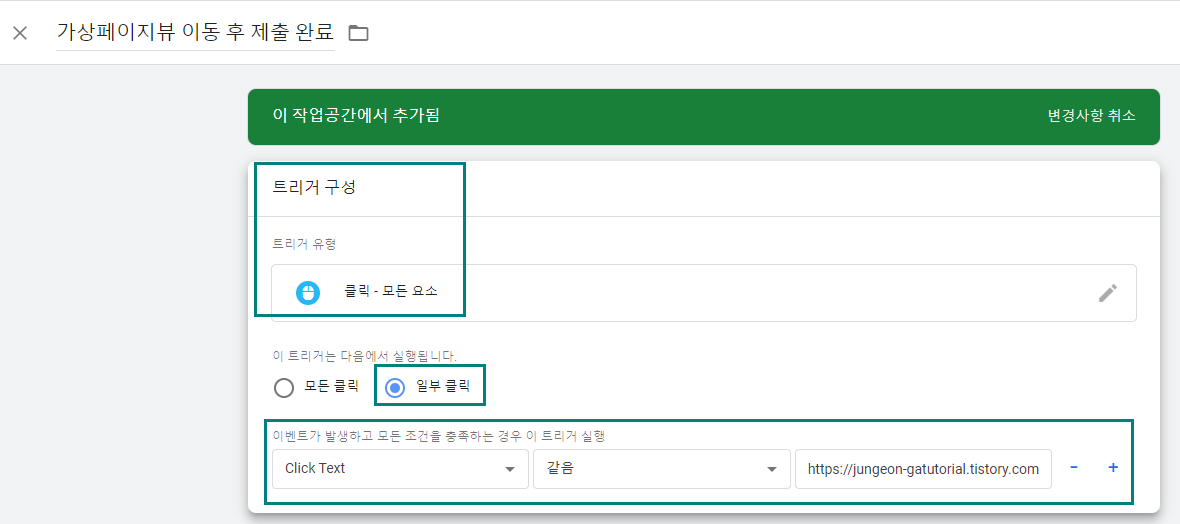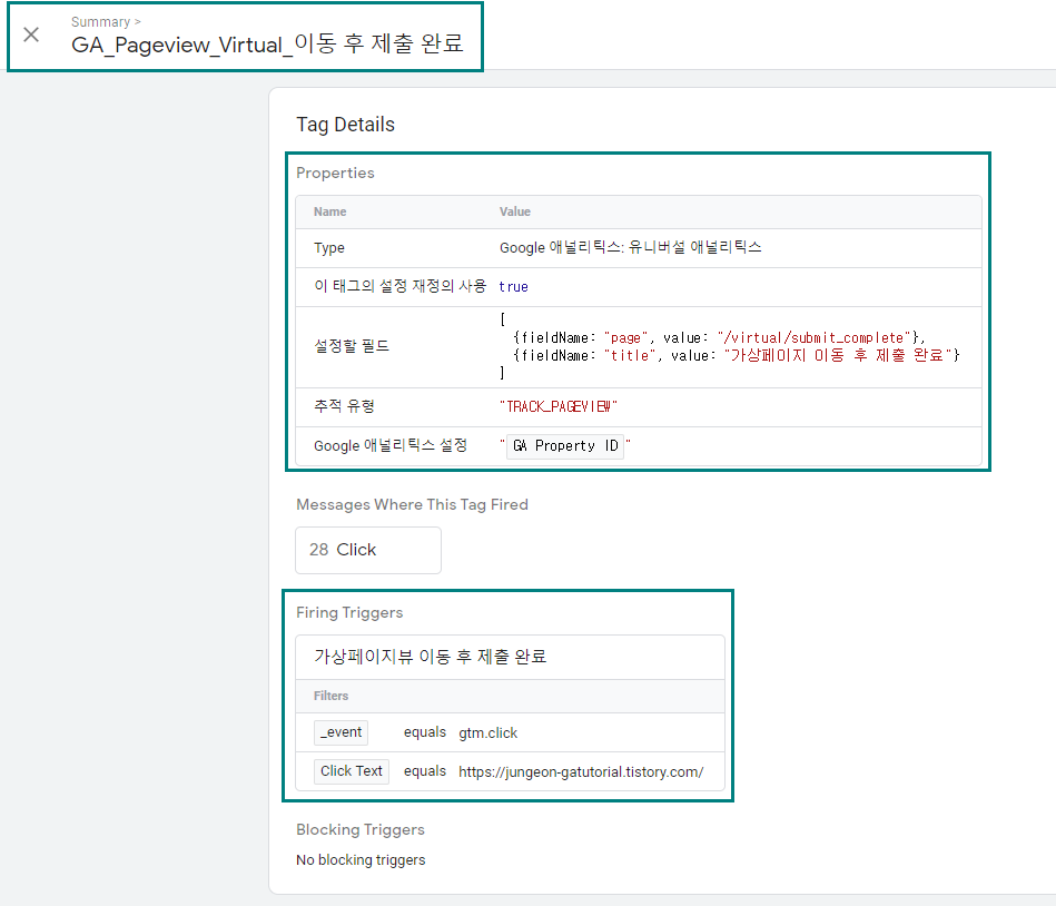 ■ 가상페이지뷰로의 이동 후 내용 제출 완료 태그 및 트리거 생성