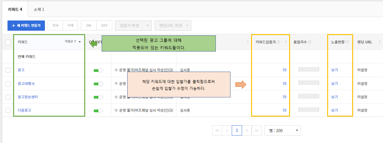 - 이 단계에서는 광고그룹 단위로 입찰을 할 것인지, 키워드 단위로 입찰을 할 것인지 선택이 가능하다.
