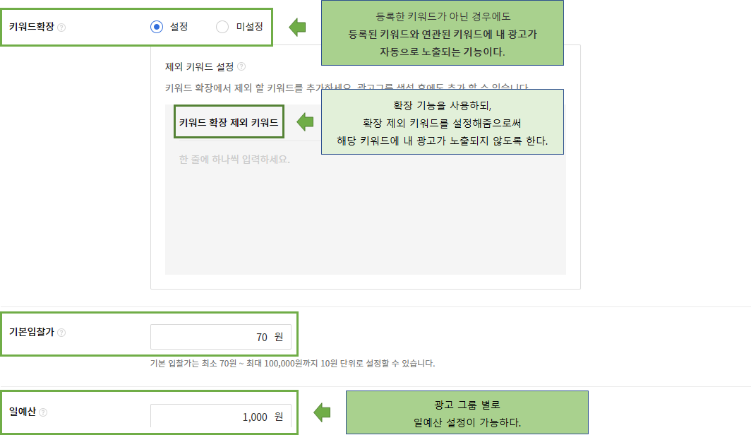 - 내가 등록한 키워드가 아닌 경우에도 등록된 키워드와 연관된 키워드에 내 광고가 자동으로 노출되는 기능으로,