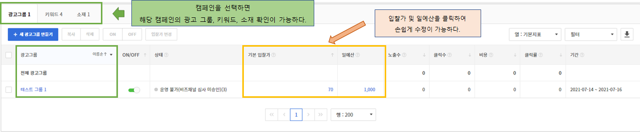 - 광고 캠페인은 키워드 광고뿐만 아니라 모든 광고를 집행하기 위한 기본 단위이다.
