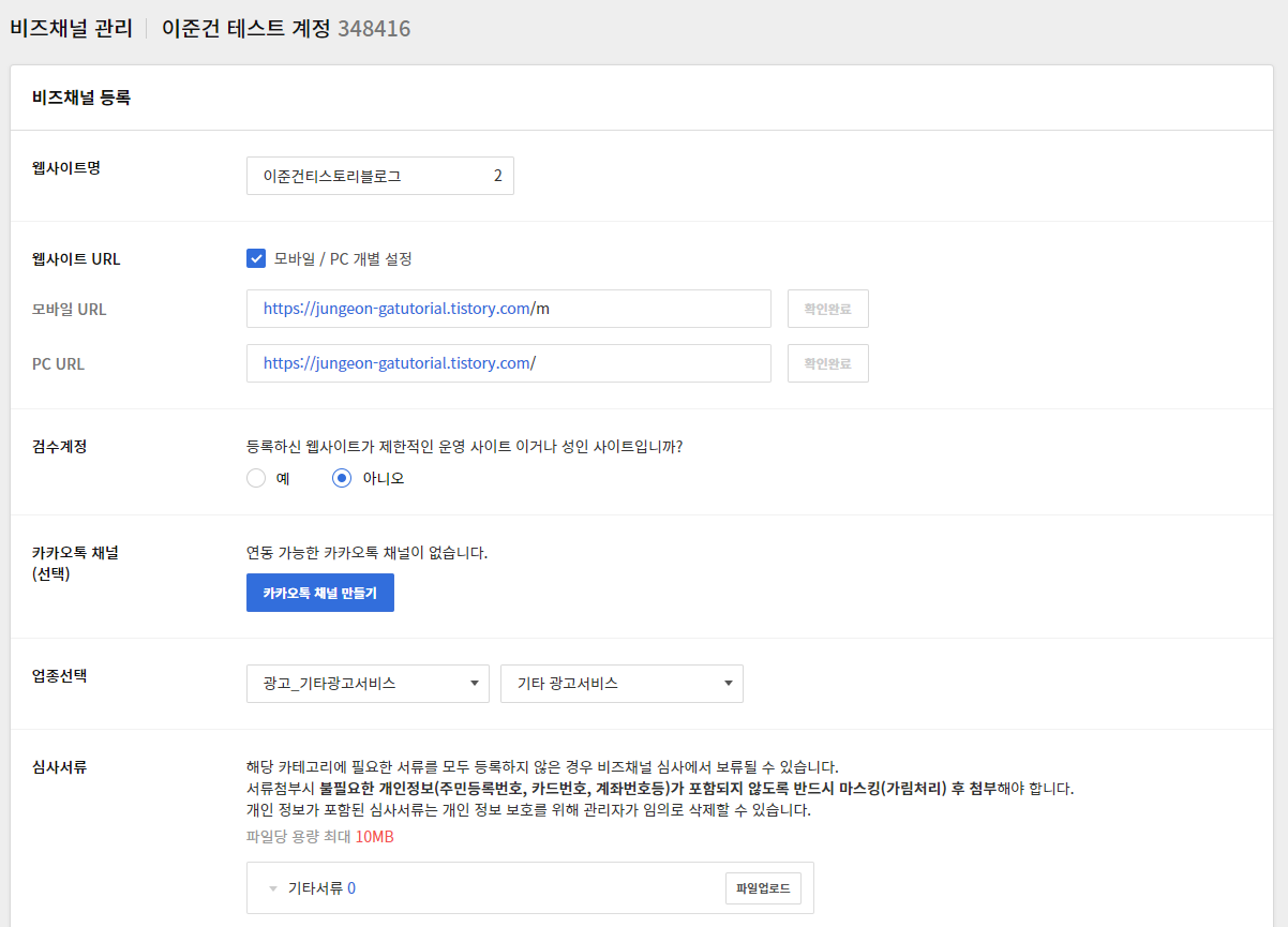 - 의료, 금융 같이 광고 대상 심사시 별도의 서류가 필요한 경우에는 서류까지 모두 등록을 하고 검수를 진행해야 심사 보류가 되지 않는다.