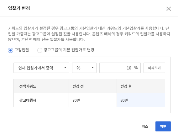 - 광고그룹 내 콘텐츠 매체 전용 입찰가 설정이 가능하다.